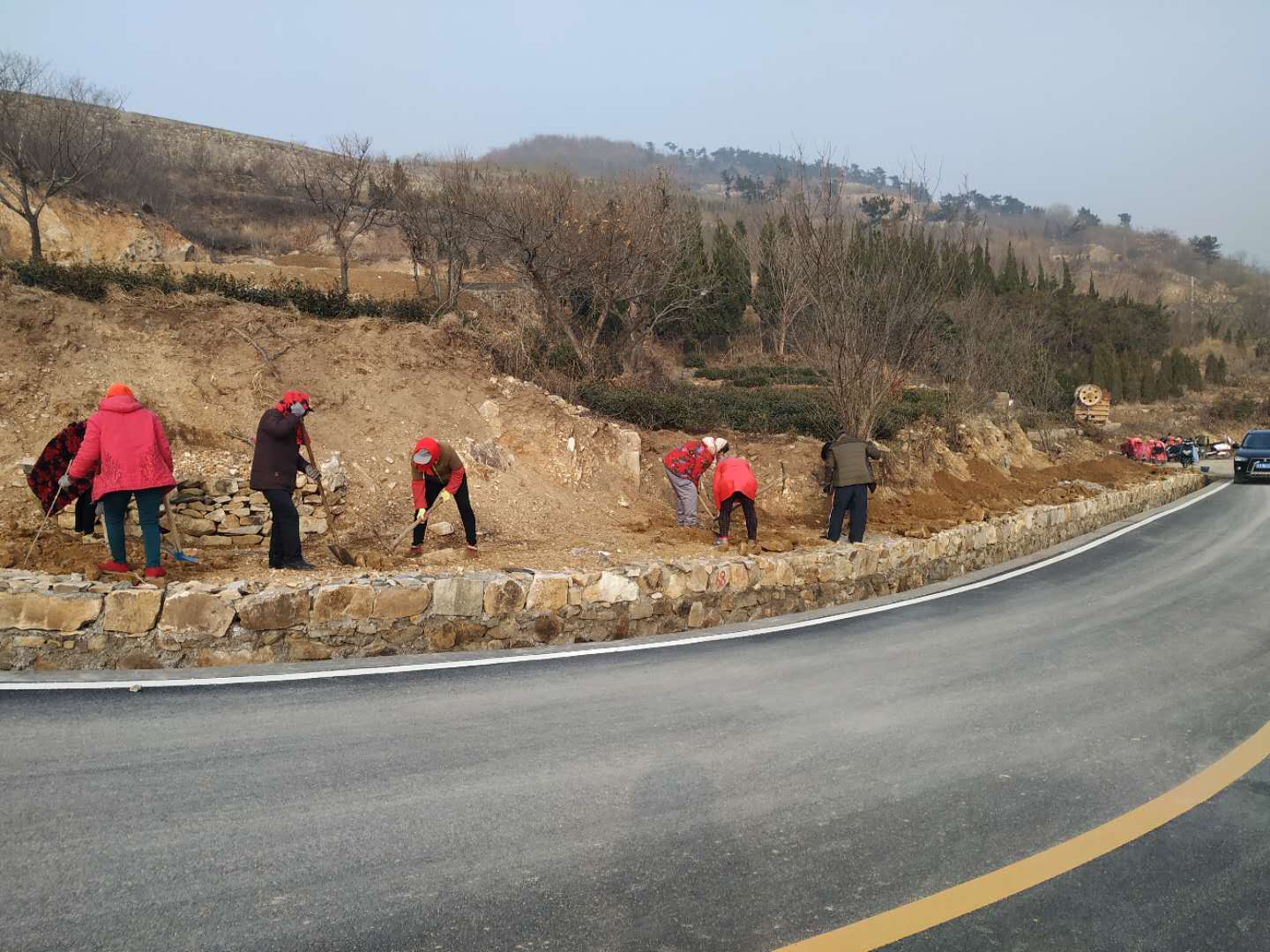 新年一開工,潤云公司就立刻展開了悟空大道的前期綠化工作,忙碌地在道路兩側(cè)栽植樹木。