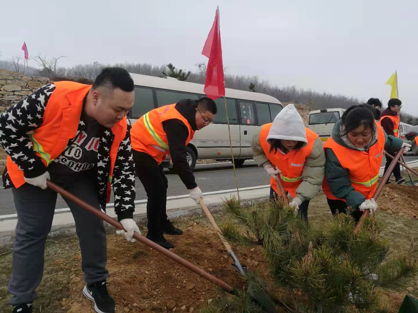 春風送暖,萬木吐綠。在南云臺林場植樹點,大家三五人一組,分工協(xié)作、配合默契,扶起樹苗、揮鍬鏟土、培實新土,齊心協(xié)力種下一株株樹苗。在市領導的帶動鼓舞下,現(xiàn)場干部職工干勁十足,一片紅火的勞動場景。一陣忙碌之后,2600余棵新栽苗木迎風挺立,錯落有致,為云臺山景區(qū)增添勃勃生機。