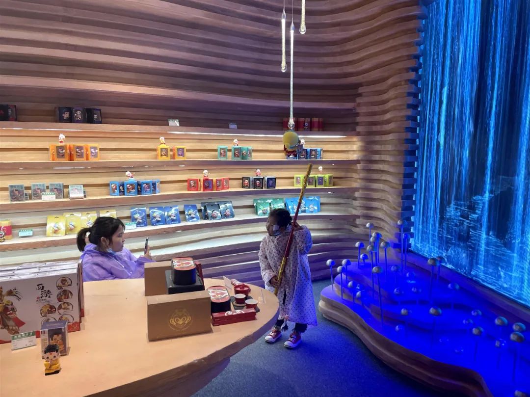 大圣公司西游文創(chuàng)旗艦店自五一開業(yè)以后,游客絡(luò)繹不絕,已成為花果山景區(qū)一道亮麗的風景線。西游文創(chuàng)店取山水之意,采用自然色之光,延續(xù)西游文化,大量采用木質(zhì)等自然環(huán)保素材表現(xiàn)山水的形態(tài),通過形態(tài)與元素提煉,傳達出山水之韻,又透射出西游文化之意。漁夫帽、泡泡槍、泡泡棒、積木等文創(chuàng)產(chǎn)品讓游客們愛不釋手,幾乎每個進店游客都會帶走幾份文創(chuàng)產(chǎn)品。